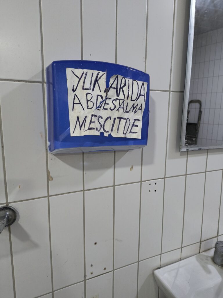 Na zewnątrz zimno jak cholera, palić niby można w przedsionku, ale tam niewiele cieplej. Toalety z wydzielanym papierem – po opłaceniu 15tl za wstęp dostałam taki złożony na pół listek tego grubszego do wycierania rąk. Równouprawnienie jak w naszej sejmowej lewicy – Sebastian nie dostał papieru wcale.